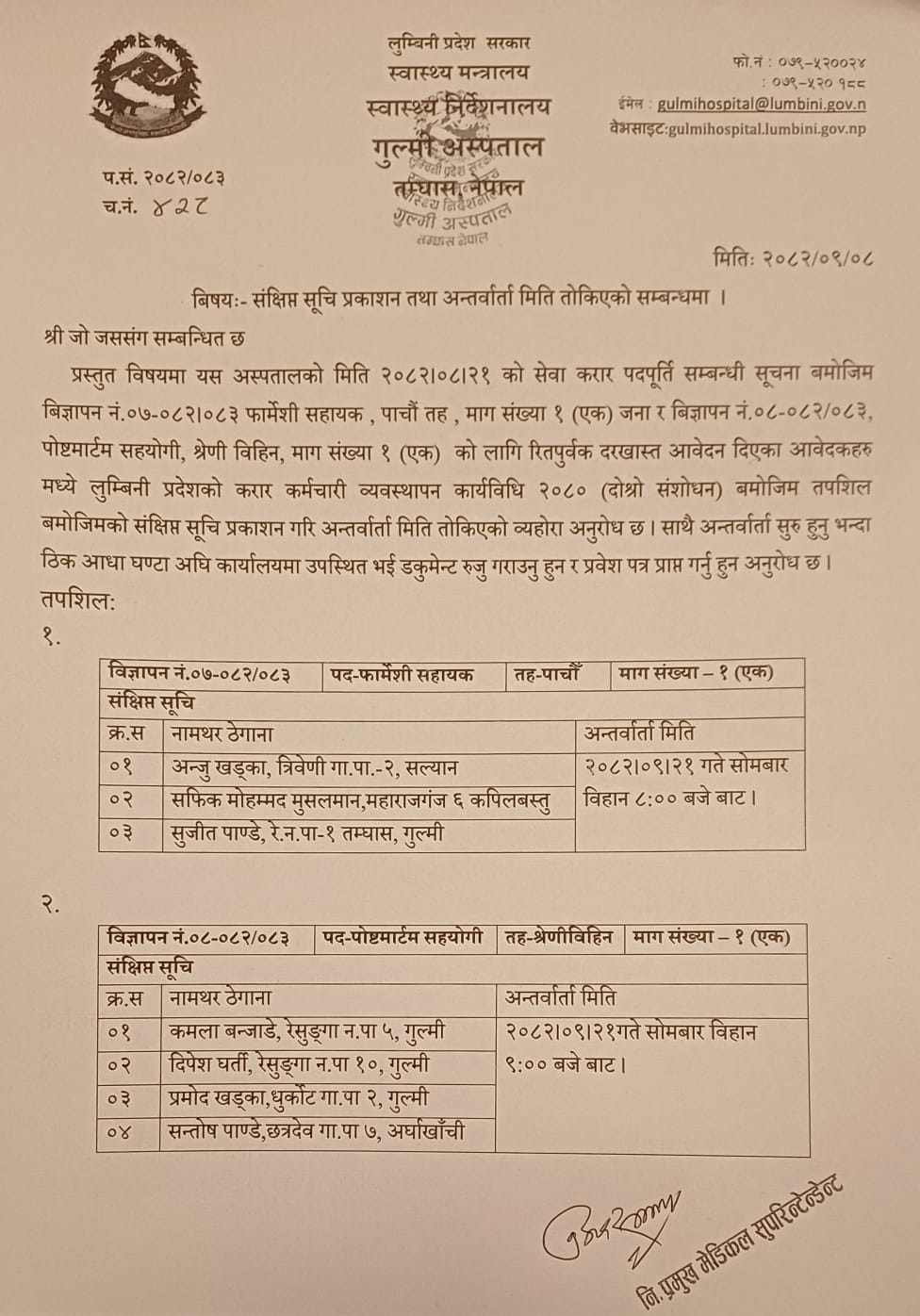 संक्षिप्त सूचि प्रकाशन तथा अन्तरवार्ता मिति तोकिएको सम्बन्धमा